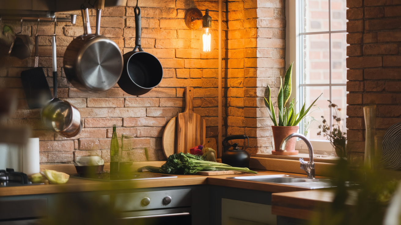 A: Layer multiple light sources including pendant fixtures with personality, under-cabinet task lighting, and ambient options like sconces or string lights. Choose fixtures that combine natural materials with clean lines.