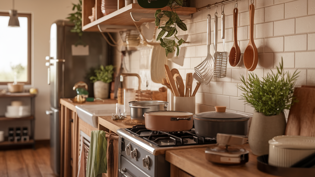 Rather than matching all metals perfectly, create a hierarchy. Perhaps brass dominates through cabinet hardware and lighting, with copper appearing in a few accent pieces like Moscow mule mugs or a vintage colander. This approach feels more collected and authentic than perfectly matched everything.